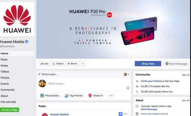目前,华为在INS上的粉丝数已经达到了100万人,而在Facebook上,它的粉丝更是超过了5000万。