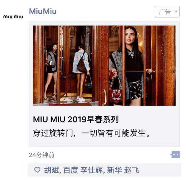 冬天已经来了,春天还会远么? 对于品牌而言,等到春天以后在做可能会为时过晚。所以很多品牌在还是冬天的时候就已经开始投放广告了~ 今天小编要跟大家分享的是MiuMiu投放的微信!这次广告主的主要推广目标就是推广品牌早春的一系列产品。