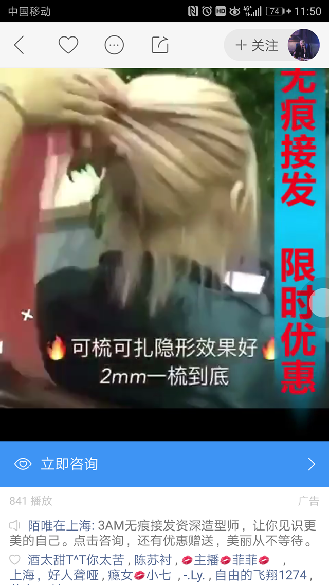 这里的广告案例就是通过接发的两个优势来吸引用户关注: 1.无痕接发 2.限时优惠