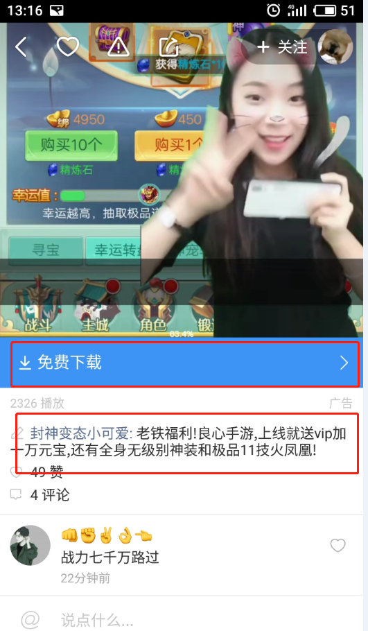 而快手广告平台的用户90后占比较大,作为年轻一族,他们对游戏的公司公关活动感兴趣程度更高。在快手广告平台投放广告,会将广告准确的推送给感兴趣的用户,使广告投放更加精准。而且快手还为APP推广类广告在视频下方设置了下载按钮,使用户下载更方便,在一定程度上减少了客户的流失。