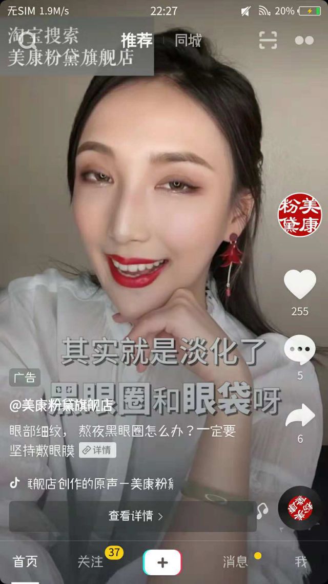 广告案例就是这样。以前小编都是跟大家将产品投放抖音广告的优势,或者是讲如何投放抖音广告。 这篇文章小编就跟大家讲讲抖音广告的使用体验好了! 打开抖音广告以后,我们开始刷视频。刷呀刷呀,我们就刷到了第四条,第四条广告好像就是我们需要的广告视频。 唔,带有广告字样,可以确定这就是我要的抖音广告。 抖音最重要的就是广告创意素材。公司做宣传片 而创意素材更需要创意,有亮点,能古代公关危机案例打动用户,能让用户记住的广告才是好广告。 这里的案例先是跟我们讲为什么要敷眼膜,敷眼膜的好处,后来有跟我们推荐了一款效果最好的眼膜就是美康粉黛眼膜。还有真人使用眼膜的使用方法。 广告主投放抖音广告最大的好处在于平台能够帮助广告主找到目标用户,并把广告投放给他们,并且为她们准备好了超简单的购买通道!点击广告就可以购买的购买流程。