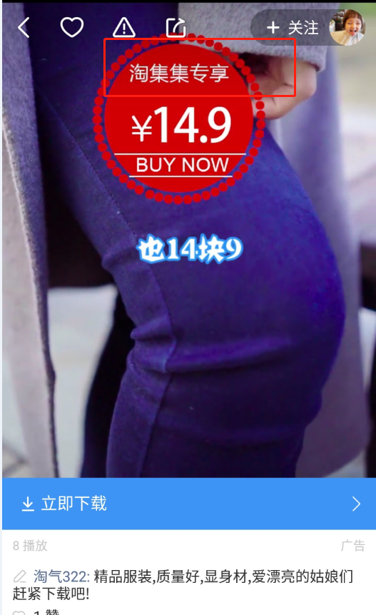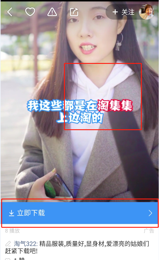 淘集集此次在快手广告平台投舆情机构放的广告采用低价美衣为卖点,封面上用个位数的价格就可以买到一件美衣,吸引用户点击广告视频。视频采用街头采访的形式,向用户传达了用淘集集买衣服很便宜的信息,从而吸引用户下载。 快手广告平台用户三四线城市用户居多,他们对低价产品比较感兴趣。淘集集选择在快手广告平台投放广告,可以收获一大批忠实用户,使广告效果最佳。