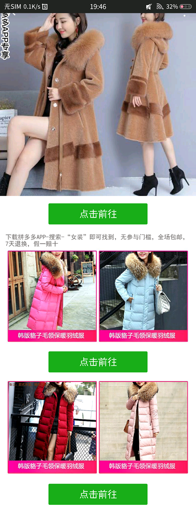 好啦,首先映入眼帘的是广告外层文案的一张图片,如果我们想要查看详情可以点击广告图片下方的“点击前往”即可。 在落地页中,也跟大家讲解了大衣的购买流程:先是下载拼多多APP—搜索&mdash网站建设及优化;“女装”,就可以找到图片上的大衣了。 除了图片上的大衣以外,还有别的冬季衣物的款式,给大家选择的余地,当然了,如果想要了解更多的衣服,还是需要下载拼多多APP的。 这是小编第一次在微信朋友圈广告发现淘宝客类广告的存在,除了上述讲到的用单品来做广告外层图片以外,我们也可以用短视频来做为广告创意,并进行投放。 拼多多投放微信,既可以提升自己的产品订单也能够提升自己的知名度,当然最重要的还是APP下载注册量也会有所提升。