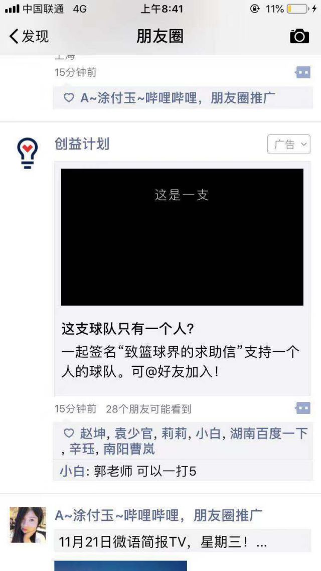 创益计划是由腾讯组织的,而且微信朋友圈广告也不是第一投放了,之前也有过的,如果大家经常关注广告的话。 这次的广告文案是以一个人的球队作为出发点,号召大家签名,支持一个人的球队IP 流量管理。不仅仅是我们可以支持,也可以@好友加入。 广告案例是这样的,广告内页就是活动内容页,参与活动即可支持。 广告无论是从视频内容还是从文案上都着重突出,希望大家能够参与活动,并希望大家能够支持。 公益活动就在我们身边,善事无大小,日行一善,做好最好的自己~ 创益计划投放案例就是这样,所以如果我们要在微信推广公益活动可以直接表达活动内容,表达出我们每个个体能做什么,做了能有什么好处,就会有很好的广告效果。因为我们都是需要引导的,所以在广告文案中出现一定的引导性文字,说不定既能达到营销目标,也能让大家积极参与!全网营销推广是什么