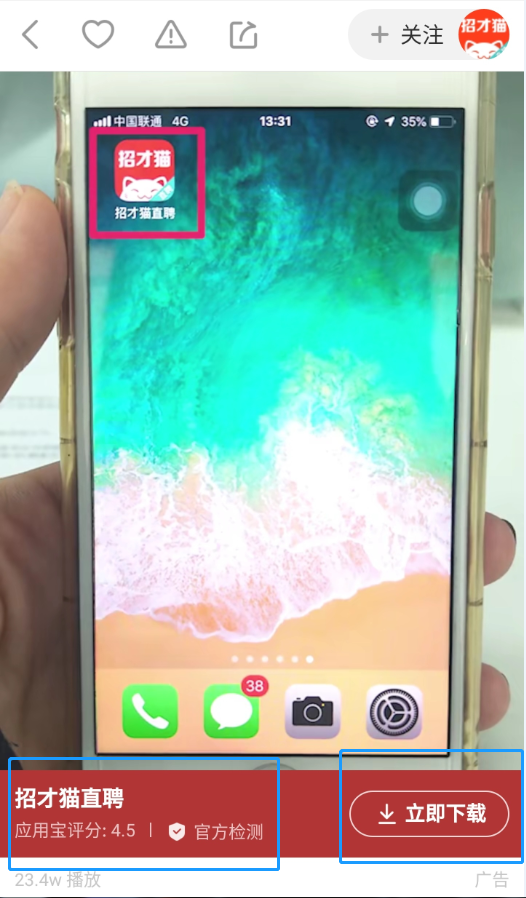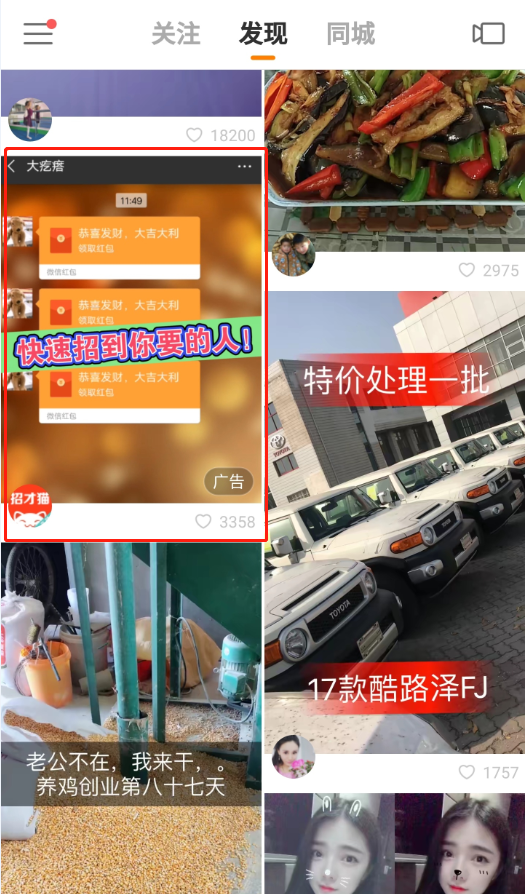 招才猫此次在平台投放广告,主要面向中小企业老板及hr,为他们解决招工难题。而快手广告平台上聚集了很多创业者老板,招才猫的广告刚好符合他们的需求。快手平台根据用户的浏览喜好为用户推送相关广告视频,用户接受度高,广告转化效果好。