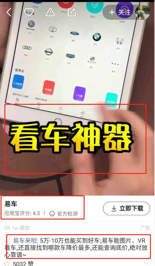 易车此次在快手平台投放广告,面向的是80后~00后这一批计划买车但还未买车,同时擅长网络设备操作的用户。平台在这一年龄段的用户占据了很大的比例,用户契合度高。 快手广告平台在视频下方设置有评论区,广告主官方可以留言详细介绍产品优势,同事还能参与用户互动,为用户解疑答惑,拉近用户距离。