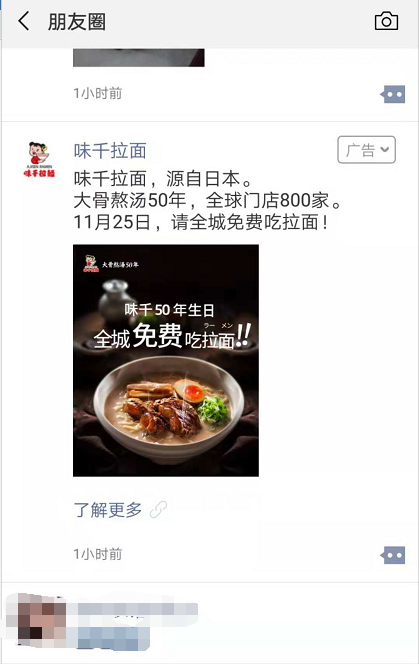 小提示:您应该对本页介绍的“微信朋友圈广告,味千拉面请你免费吃面了!”相关内容感兴趣,若您有相关需求欢迎拨打我们的服务热线或留言咨询,我们尽快与您联系沟通微信朋友圈广告,味千拉面请你免费吃面了!的相关事宜。