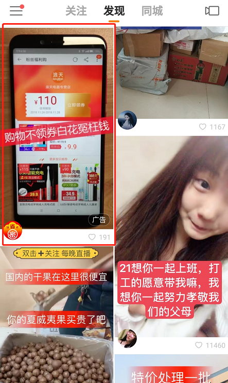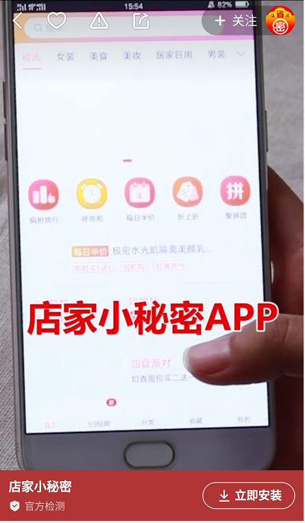 店家小秘密APP在平台投放信息流广告,广告视频随机插入用户上传的视频中,用户接受度高。广告封面图与标题对喜欢网上购物的用户来说,非常具有吸引力。广告内容也是贴合生活的故事情节,先引起大家的好奇,然后向大家解密的方式,引出广告产品。