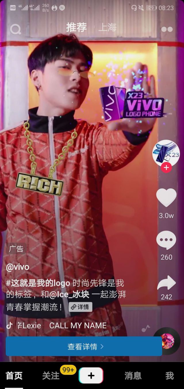 Vivo手机是一款追求乐趣、充满活力、年轻时尚的智能电子产品,为了推广vivox23,vivo手机选择和抖音合作进行新宣传片的纯音乐产品的宣传,年轻用户喜欢小鲜肉,所重庆公关策划公司以vivo手机一贯以来都是邀请明星进行代言,vivo在手机行业的名声也是非常大的,也有不少人实用的是vivo的手机,此次vivo新款广告宣传也是选择了抖音这样一个年轻、大流量的平台。 投放目标 凸显vivox23的新亮点 此次新款手机背后所绘制的logo非常吸引用户,作为新款发布的手机,vivo需要产品的大量曝光,并且定向瞄准潜在用户群体,抖音的形式更好的将产品优势展现出来,通过抖音定向投放传递给受众用户。 投放方案 ![]()