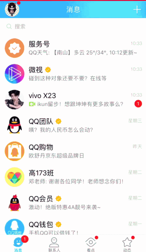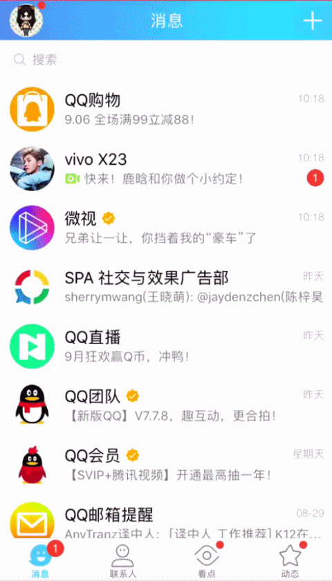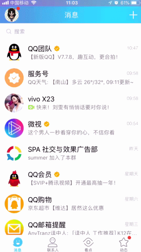 细看才发现,粉丝们打call的画风极其一致:原来是vivo通过QQ IMAX,即手Q创新的原生Push消息,在X23发布会前夕,向代言人鹿晗、刘雯和蔡徐坤的粉丝们呈递的定制惊喜。 对粉丝营销驾轻就熟的vivo,一方面通过腾讯社交广告的数据能力,高效网罗了代言人活跃的粉丝群体,另一方面用了第一人称的口吻,加上竖屏形式,创造了和粉丝的专属对话,将X23的发布会变成粉丝和代言人之间的亲密约定。