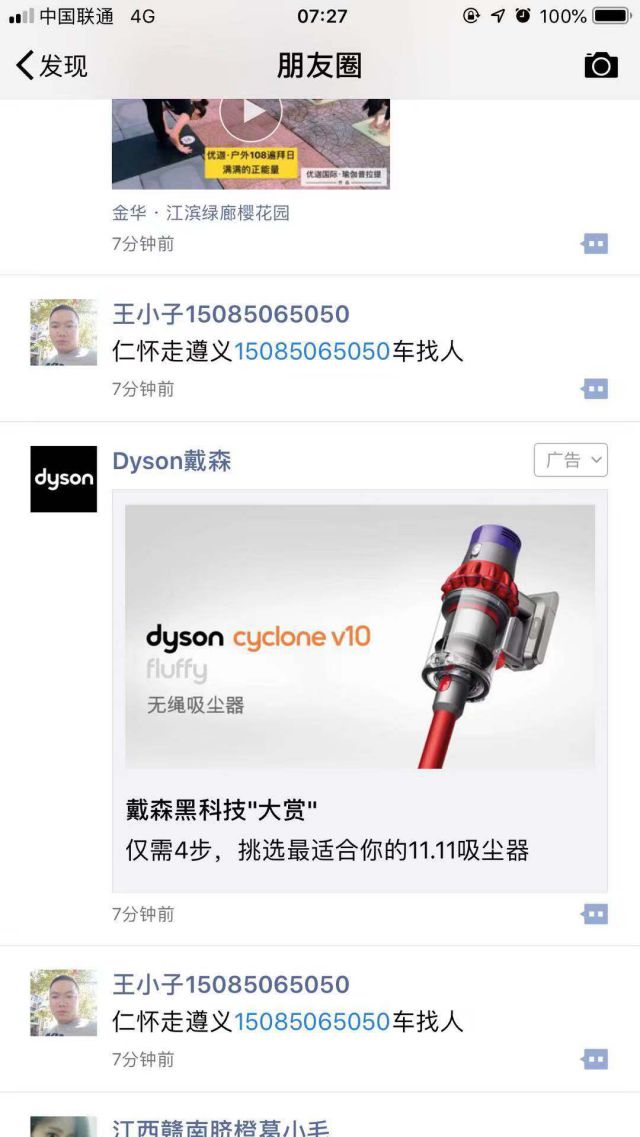 不知道戴森卷发棒是不可能滴,毕竟它在刚出来的时候,就已经刷爆微信朋友圈、微信公众号和微博了! 不过不是戴森卷发棒,而是戴森吸尘器。 先看下戴森吸尘器是以什么形式出现在微信朋友圈的?