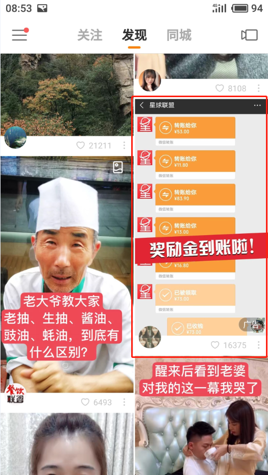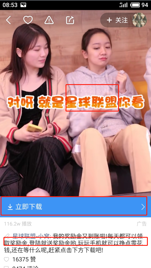 为星球联盟设计的广告以奖励金提取到账为封面,非常吸引眼球;视频中用简单的日常对话引出星球联盟,并用放大字幕和亮丽的色彩让用户记忆深刻;底部评论区重复提到轻松赚取奖励金,玩手机就能赚零花钱。 星球联盟针对的用户年龄相对比较年轻,喜欢在闲暇时间用手机娱乐,并且这部分人中还有一部分未参加工作,经济能力有限。而快手的用户90后,00后占比较大,用户人群对于星球联盟来cps说很合适。星球联盟选择在快手广告平台投放广告,在很大程度上提高了广告的点击率游戏手游。