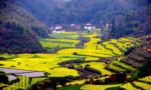 篁岭晒秋景区位于中国最美乡村婺源,篁岭村坐落在群山之中,房屋建设也非常营销准确的有层次感,因为位于山上,所以梯田也层层叠叠,环绕在大山之间,景色十分的美丽。据介绍了解到每到春季,梯田里的油菜花齐齐开放,与桃花、梨花照相辉映,完完全全是一个油菜花海,美不胜收。篁岭的秋季,火红的辣椒、金黄的稻谷出现在每家每户的屋顶木架上,形成婺源独有的“篁岭晒秋”农俗景观。