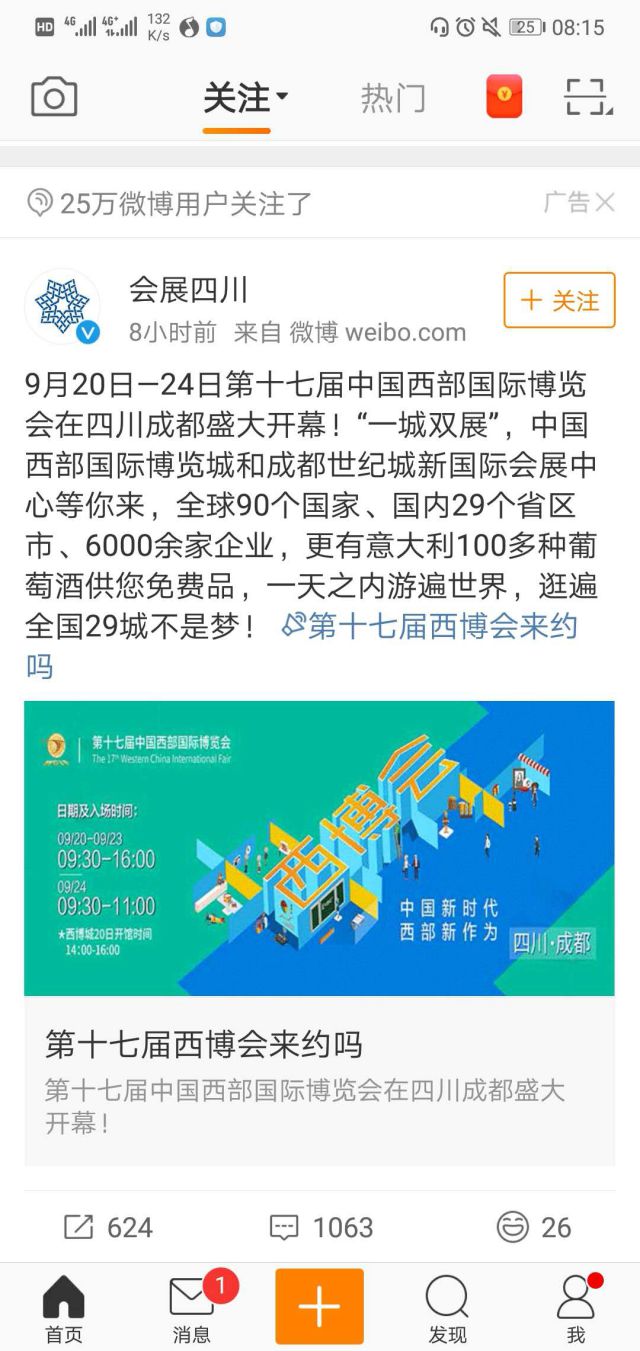 中国西部国际博览会是有中国西部地区共办、共享、共赢的国家级国际性盛会,这次会展在四川成都开幕,全球90多个国家、国内29个省区市、6000余家企业,还有意大利100多种葡萄酒供大家免费品尝,让大家一天之内游遍世界。 像这种国际性的展览会,境内外各方高度重视西博会,关注的人比较多,此次也是选择了微博投放广告免费信息平台发布,以微博信息流广告样式进行展现,一般采用计费方式,即按照每千次曝光收取广告费,信息流广告和新闻资讯长得一模一样,穿插在推送的文章中,当用户阅读时,你的广告信息就会自然地融药品专题广告入其中,被用户接受,对用户干扰较小。 微博向来被各广告主所青睐,微博拥有海量用户资源,用户覆盖全国各个城市和地区,给微博广告传递提供了更广的范围,广告曝光高,能够吸引更多的意向客户和潜在粉丝,精准定向投放,广告转化率高。 微博广告基于其强大的社交属性,广告主推广的的信息能够实现二次传播,并且二次传播不收取费用,对于广告主来说,性价比是非常高的。 ![]()