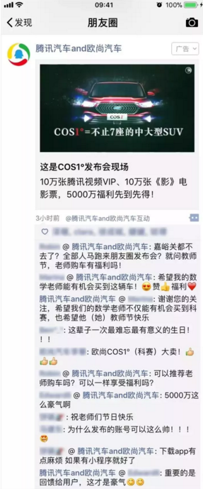 在9月10日揭晓,欧尚汽车携腾讯汽车在微信朋友圈举行了行业首次纯线上新车发布会。作为首个“吃螃蟹”的汽车品牌,欧尚为何可以大胆告别线下发布会,将新车发布大事件放在? 短时间大曝光: 不是每个线上平台都能开3亿人发布会 传统线下发布会现场至多容纳千人,而朋友圈广告作为发布网页快照打不开会“现场”则能实现3亿人共同见证的盛况,帮助品牌实现最大程度的覆盖和曝光。 营销闭环品效双收: 1.6万新车订单,21万新注册用户 据欧尚汽车官方披露,上市发布当天COS1°新车订单就突破1.6万。由朋友圈广告带来的大量新用户使欧尚style APP迅速登上APP Stor电话营销管理系统e热门搜索排行榜,单秒并发峰值超过17万次,远超预期,甚至导致服务器宕机。活动当日欧尚style APP注册量达21万,参加互动活动用户达303万。 ![]()