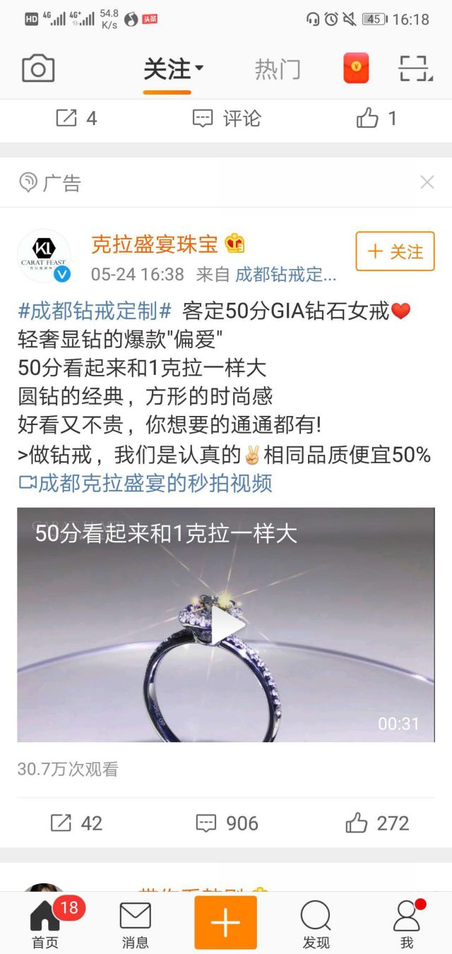 小提示:您应该对本页介绍的“克拉盛宴珠宝在微博广告投放案列”相关内容感兴趣,若您有相关需求欢迎拨打我们的服务热线或留言咨询,我们尽快与您联系沟通克拉盛宴珠宝在微博广告投放案列的相关事宜。