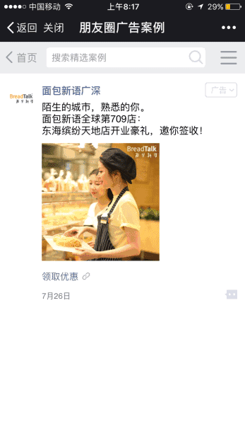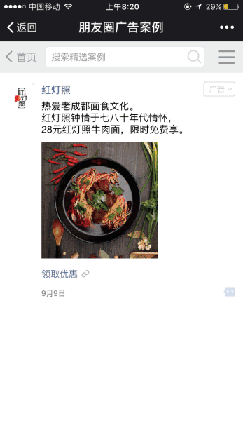 关键词:餐饮,微信朋友圈广告,微信