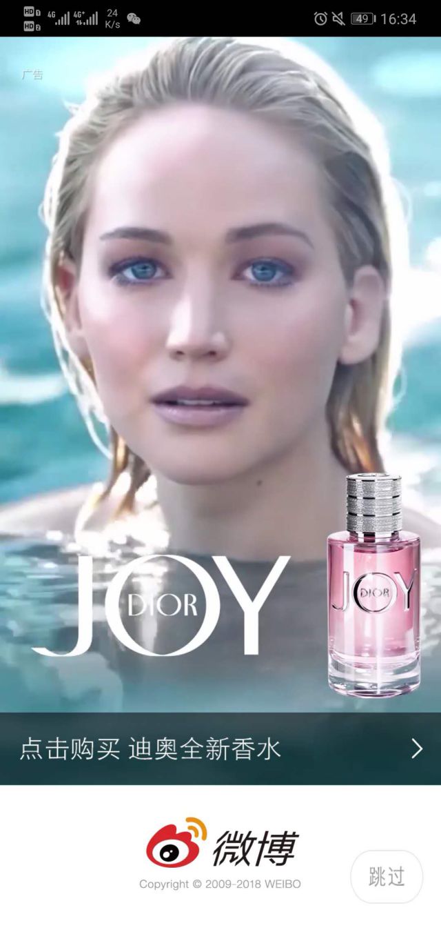 迪奥香水一直受着全球很多人的喜爱,不同的香水也有不同的宣传广告,吸引女性的目光,迪奥香水著上海市公关公司名法国时尚消费品牌,随着生活水平的提升,人们越来越重视享受,香水是表达女性妩媚性感不可缺少的补充。 迪奥全新香水在微博开屏广告中,邀请了詹妮弗.劳伦斯来演绎新品,广告很简单,将全新香水和其标志呈现在模特面前,这款香水以佛抖音直播间手柑、柑橘为主调,同时还加入了格拉斯玫瑰、茉莉、檀香木、麝香等多种成分,整体香气清澈、充满层次感而带有一丝神秘氛围。 微博拥有最有活力的消费群,受众关注度高,85.8%年龄在18岁到35岁之间。因此,微博广告的目标群体是目前社会上层次最高、收入最高、消费能力最高的最具活力的消费群体。 开屏广告优点: 1.用户干扰小 2.抢占应用开启的“黄金5秒”,增强品牌记忆度,且广告更具权威性,让用户记忆更加深刻 微博开屏广告在用微信营销户打开微博APP时广告呈现,开屏广告的曝光效果是非常强的。一般开屏广告以图片样式或者动态图的样式展现,其中动态图的广告样式视觉冲击力强,能够有效抓住用户的眼球,吸引注意力。 ![]()
