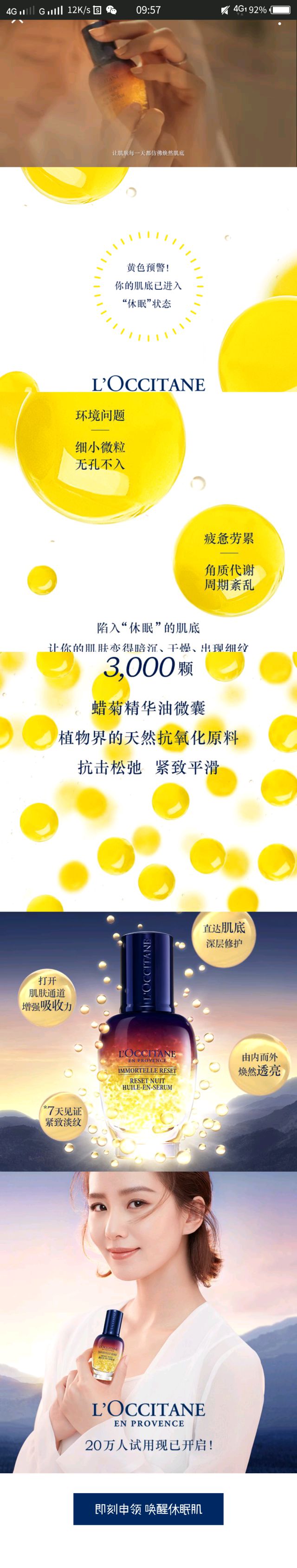 广告主是谁? 普罗旺斯欧舒丹 最打动人心的内容是什么? 和刘诗诗一起见证普罗旺斯植物能量,然后一起唤醒肌底能量,重返18岁~ 点击广告以后会发生什么神奇的事情?