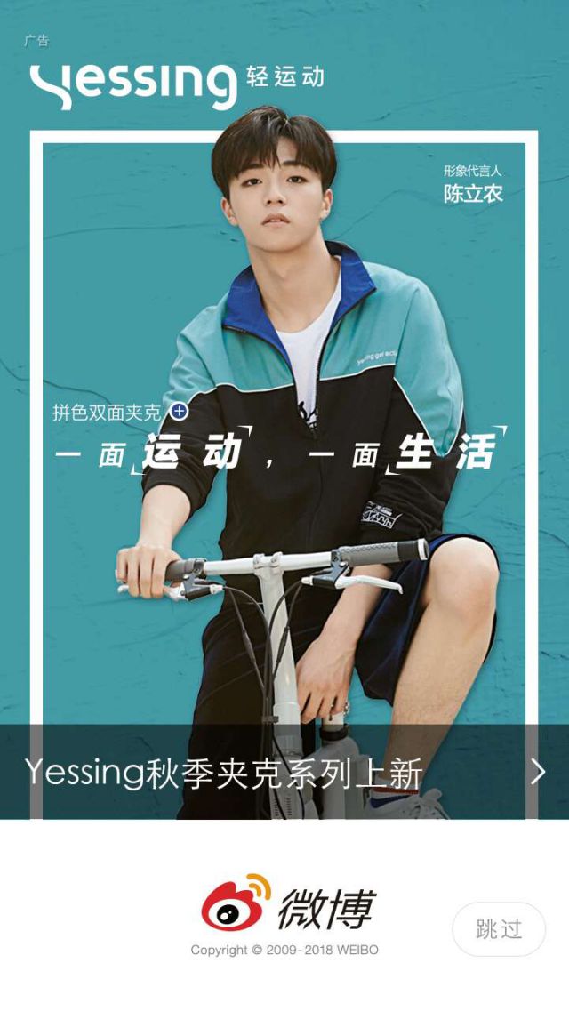 Yessing作为网易旗下新推出的运动服饰代表品牌,是网易集团在电商布局上的又一次新的尝试。Yessing致力于提供运动生活两相宜的高品质穿搭选择,传递元气生活态度。依托于网易严选成熟的供应链体系和线上平台资源,以匠心精神层层把关服饰品质,带给消费者无忧的购衣与穿着体验。八月八日,网易发布首个独立服饰品牌yessing,主打“轻运动”的概念,并宣布张一山、谭松韵、陈立农出任品牌形象代言人,今天的开屏广告是一张由陈立农代言的图片。目前,Yessing的首批轻运动服饰已登陆网易严选。 广告中的陈立农身穿运动服,骑着自行车给人的感觉很某活动媒体邀约具有青春的气息并且带着运动的感觉。随着天气快要步入秋季,夹克也成了我们要买的必要外套,现在时间做广告其实是很有必要的。 微博开屏广告的优势: 1、通过高效的创意,提高用户对广告的关注度,利用刚打开APP的那几秒,吸引用户的眼球,开屏广告的样式多种多样可以随机选择,根据自己产品的优势,选择适合自己的广告形式; 2、微博用户日活跃度高,打开微博的用户都会看到开屏广告这个是不可避免的,那么对于yessing品牌企业危机公关发布的曝光具有很好的效果,宣传力度非常大; 3、微博开屏广告可以大幅度的进行广告的宣传,进行cpc计费,这样既可以找出大量的潜在用户,又可以激活老用户,实现大量的转化。