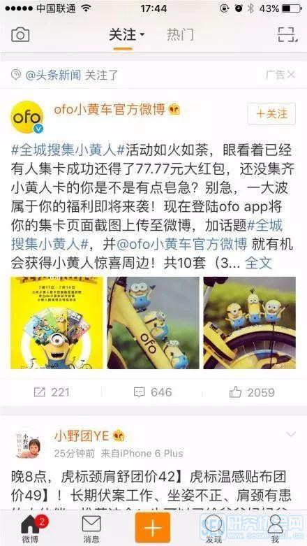 ofo小黄车是一个无桩共享单车出行平台,缔造了&ldquo南京宣传片;无桩单车共享”模式,致力于解决城市出行问题。用户只需在微信小程序、支付宝、滴滴出行或ofo小黄车App扫一扫车上的二维码或直接输入对应车牌号,即可获得解锁密码,解锁骑行,随取随用,随时随地。 小黄车的出现,让人们出行更加方便,小黄车官方微博也在微博投放了广告,类似于小黄车这种共享单车有很多,摩拜单车、哈罗单车、优拜单车等等,可以说竞争还是比较激烈的,各有宣传海报背面各的优劣势。 小黄车以组图信息流模式进行展现,以全程搜集小黄人和用户互动,促使他们参加,增加知名度。 微博拥有海量用户资源,用户覆盖全国各个城市和地区,给微博广告传递提供了更广的范围,广告曝光高,能够吸引更多的意向客户和潜在粉丝 微博广告基于其强大的社交属性,广告主推广的的信息能够实现二次传播,并且二次传播不收取费用,对于广告主来说,性价比是非常高的 ![]()
