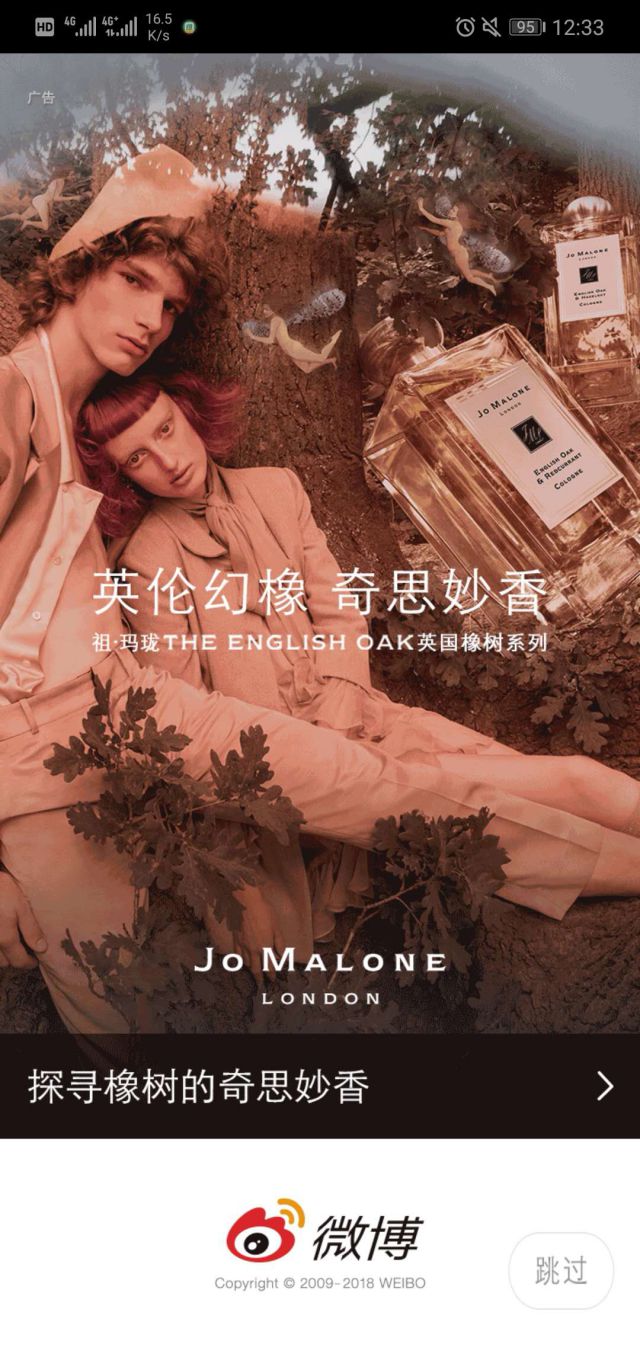 英国知名品牌祖·玛珑JO MALONE,属于雅诗兰黛集团,其香水以简单而纯粹为诸多明星喜爱。质朴的包装,透露着浓厚的英伦风情。JO Malone在西方有着香水世界女王的美誉,这个牌子价格不菲,其香水以简单而纯粹为诸多明星、上流阶层所喜爱。 广告着呢哥哥画面就像是一个神秘的森林,原始的清新感,符合英国什么森林的美好气味,Jo Malone 一向没有高调宣传,却深得女士喜爱,只因气味独特,配上简约包装比较好的药企,所有人也可找到喜爱的气味。 此次Jo Malone选择投放微博开屏广告,画面冷色调和香水搭配的非常唯美,祖·玛珑在中国市场的消费群者体偏年轻化,亦乐于接受新的消费方式,同时追求生活品质强调自我个性。 微博用户人群属性青年白领群体是微博用户的主力群体。3做推广员0岁以下青年群体作为微博的主要用户,占比达到80%以上;18-30岁用户占比接近70%,这类人群消费能力成熟,时尚前卫。 微博拥有海量用户资源,用户覆盖全国各个城市和地区,给微博广告传递提供了更广的范围,广告曝光高,能够吸引更多的意向客户和潜在粉丝 微博开屏广告用户干扰小,强曝光在用户第一眼,微博开屏广告在用户打开微博APP时广告呈现,开屏广告的曝光效果是非常强的。一般开屏广告以图片样式或者动态图的样式展现,其中动态图的广告样式视觉冲击力强,能够有效抓住用户的眼球,吸引注意力。 ![]()