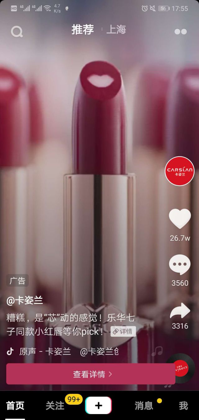 卡姿兰,时尚彩妆领导品牌,用"年轻、轻经典"的创意灵感指引彩妆潮流趋势,不断开发高安庆网站开发品质彩妆产品,让年轻爱美女性永远走在时尚的尖端。 说到口红,女生真的在熟悉不过了,永远都缺一支口红,可能是女人的天性吧,对这些东西有着无法言喻的喜爱,此次卡姿兰新一任代言人—乐华七子,在千禧一代中是拥有超高人气的卡姿兰与乐华七子之所以能够合作,是因为双方对年轻新生力量的一致肯定。 此次的“卡姿兰小红唇”更是成为最耀眼焦点,七个主打色,表示乐华七子专属颜色,最为千禧一代的先锋,他们年轻有活力、拒绝标签,也将与卡姿兰一起把年轻的能量和态度一起传给更多爱美的消费者。 抖音的用户大多是90后,在这其中主力军还是多为95后00后,男有70%的高活跃度用户来自一二线城市。用户之间关系为活力时尚的的95后/00后年轻用户带动80/90后一起玩转潮视界。 抖音用户偏向年轻化,对时尚潮流异常敏感,他们喜欢时尚的东西,并且都喜欢年轻一代的偶如何媒体邀请像,明星与品牌形象的符合,会提高潜在用户和粉丝的信任,从来带来一定的转化。 ![]()