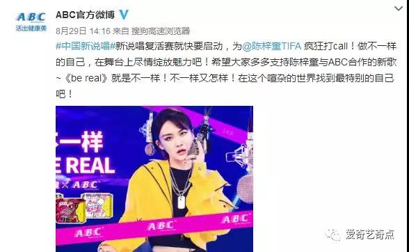 三、顺势生长:联动节目延展 赛程进入复活赛阶段,实力与人气俱备的陈梓童毋庸置疑成为热门人选。ABC联动节目赛程,通过官方发起为陈梓童打Call网上营销方法营销的活动,充分调动粉丝热情,让MV合作得以延展。