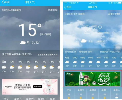 关键词:QQ天气,精准投放