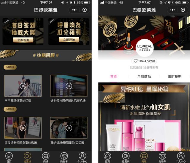 2018年戛纳电影节于5月8日盛大开幕,在每年的戛纳电影节上不光可以欣赏各国佳片,还有来自全球的众多明星带来这一季最流行的美妆趋势。 作为戛纳电影节的官方合作伙伴,美妆护肤品牌巴黎欧莱雅一如既往的请来了诸多闪耀明星踏上戛纳红毯,包括李宇春、王源、关晓彤、奚梦瑶、Julianne Moore、Nikolaj Coster以及巴黎欧莱雅全球最新代言人,两获戛纳电影节“影后”殊荣的Isabelle Adjani。 对于历年都在电影节营销上不断突破创新的巴黎欧莱雅而言,今年更是开创历史的用“小程序+”的新方式探索社交电商的无限潜力。在品牌与明星闪耀红毯之时,让万千粉丝也能通过小程序上“边看边买货,签到得红包”的社交电商新玩法,一同感受夏日的时尚之美。 “观星+剁手”一步到位,小程序助巴黎欧莱雅释放戛纳之美 对美妆护肤品牌而言,一年一度的戛纳电影节无疑是在消费者心中强化品牌印象的关键时刻,在美妆客群加速年轻化的当下,社交平台更是成为品牌与年轻人接触的最好方式。 一直在营销上不断创新的巴黎欧莱雅,当然不会忽视微信这样极具年轻人“影响渗透力”的场景。不同于以往美妆品牌分散、单打、轻运营的做法,这一次巴黎欧莱雅以微信小程序为基石,将品牌年初最核心的活动Campaign与社交平台融合在了一起,借互联网营销介绍由“品牌大事件”快速引爆粉丝关注。 那么,如何才能让明星、电影节和品牌拧成一股对粉丝而言无法拒绝的“时尚引力”?直播+视频,这样一种在年轻群体中接受程度最高,感染力最强的组合就成了不二之选。 当用户进入到巴黎欧莱雅品牌小程序当中后,可以直接观看明星接机、网络红人直播以及明星采访、明星红毯、侧拍等一系列短视频,让粉丝们一饱眼福。依托于小程序极强的创新力,巴黎欧莱雅还首次在小程序中加入“边看边买”功能,直接跳转小程序商城购买明星同款产品,把明星注意力转化为对产品的兴趣和购买,让红毯上的“李宇春们”转瞬成为“时尚带货女王”。