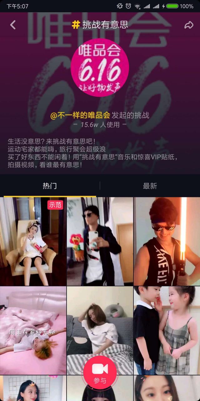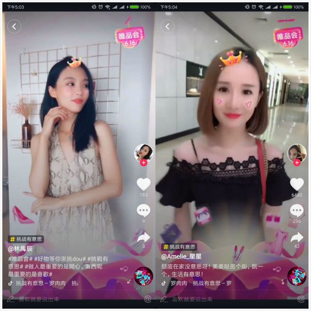 挑战赛在唯品会和其各大合作品牌、合作内容机构的热推下,很快在抖音掀起了一轮狂欢热潮,获得超4.9亿品牌总曝光量,1386万点赞数。#挑战有意思#挑战赛总计有142,703人参与,获得投稿157,675条。那么,此次唯品会是如何玩转抖音,制造刷屏级的流行内容?我们总结了以下不容错过的营销秘籍。 创意贴纸与魔性BGM,制造刷屏法宝 #挑战有意思#是此次唯品会挑战赛的主题,它向用户传达了“show出你的生活好物”,为沉危机公关松子下载闷的生活加点颜色的乐活理念。为了生动形象地讲好这个故事,唯品会携手抖音量身打造了两大定制内容。其一就是唯品会专属抖音贴纸,它能自动识别用户的面部特征,为用户戴上一顶女王范儿爆棚的V专属皇冠。与此同时,唯品会616粉色礼盒会同步出现在用户面前,里面不断冒出各种好物,非常逗趣。