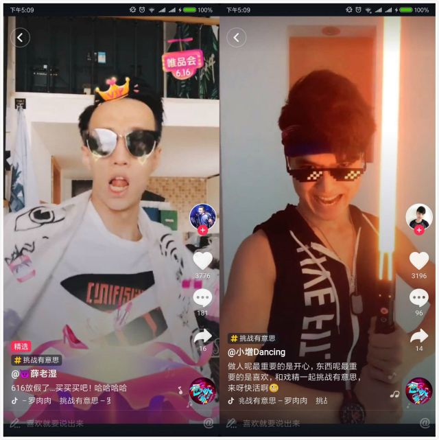 除了抖音贴纸之外,洗脑的《挑战有意思》BGM也增加了挑战赛的可玩性。《挑战有意思》歌词通俗易懂,以说唱的形式唱出了年轻人对有意思的生活的向往。轻快的音乐和动感的节奏互相搭配,使整首BGM活力无比。 达人团强势引流,引爆关注 除了有定制内容加持之外,唯品会还邀请了6位达人组团加入挑战。达人团由拥有204.3万粉丝@Panadol雅哥领衔,包含@陈意礼、@Ameile_星星、@薛老湿等著名抖音达人,横跨技术流、颜值、搞笑等多个领域。