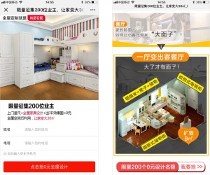 (腾讯视频通栏大图广告 天天快报通栏大图广告示意) 用户在日常生活中,时间分散在不同平台,而腾讯社交广告三大流量资源场景多元、内容丰富、展现样式原生友好,为广告主实现优质的品牌曝光、目标人群精准洞察。 投放法则:文案与视觉交相呼应,落地页推动转化 在不同广告投放场景中,素材制作的小心机作用明显。此次尚品的广告投放中,除了遵循了文案与视觉相互映衬的法则,在落地页设计上也颇有心得: (1)文案直击用户痛点。限量出具3D设计图“扩大使用空间“、“效果满意再付费”等。凭借限量、免费等字眼吸引目标人群眼球,进而撬动刚需住房家装需求,促使用户点击并积极填写表单。 (2)对比效果图吸引眼球。通过房屋设计前后对比图的拼接,直观体现尚品家居定制的实用效果,配合“免费设计”较大程度的吸引眼球,触发点击。