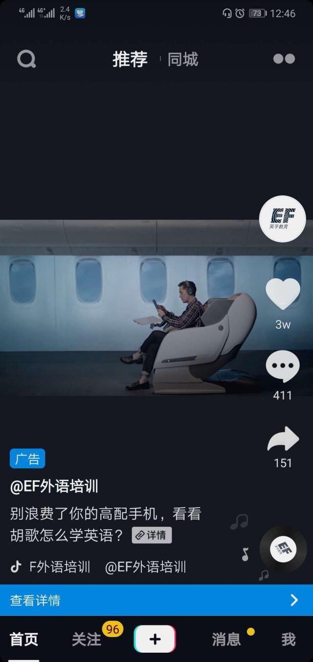 学好一门外语很重要,英孚教育提供儿童英语课程、青少年英语课程、托福雅思培训、等等……主要致力于语言学习、留学旅游以及学位课程。针对不同年龄学员,设置不同的课程。而且现在社会有学历有文化多么重要,企业需要学历、社会发展需要人才。对于一二线城市来说,教育更是重中之重,父母是学历较高的一代,对子女必然要求更高,所以一般有关教育的广告多数人都会去了解。短视频传递教育一针见血,简单粗暴,能够吸引家食品问题公关危机处理长的目光,说到短视频,就不得不提抖音。 选择抖音的原因 抖音以短视频结合社交媒体方式,能让一个品牌迅速曝光在用户面前。成本低、传播快、转换高!相对于其他平台投放广告,费用高不说,转化率和曝光率远远不如抖音。在这新兴短视频上,抖音占据一定优势。 抖音背后是独有的一二线城市年轻生态人群,日均活跃用户有1.47亿,日均播放量更达30亿!90后&95后是主力达人,男女比例为4:6,70%以上的核心用户来自一二线城市。说了这么多,其实想告诉你,抖音原生广告位,转化优质位置,品宣效果强! 做引流需要多少钱下危机公关失败共同原因面这个广告中利用明星效应胡歌进行推广,选择抖音,投放效果明显。