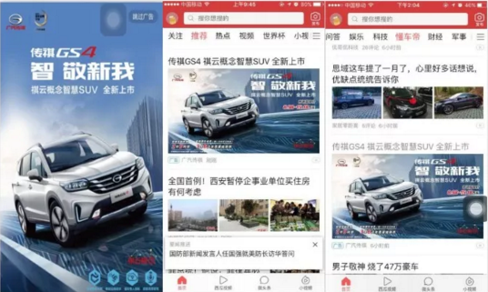 事实上,借助活动前的调研得知,线下车友狂欢活动参与人群主要为男性,他们关注运动、娱乐且对传祺GS4外观、智联系统有浓厚兴趣。据此,每场活动期间,主持人会与现场用户进行深度互动,除了口播介绍全新传祺GS4卖点信息,更针对广汽传祺GS4卖点定制有奖问答,有效的促进了卖点信息的深度传播。此外,在各个活动现公关公司有什么场布置的细节处,传祺GS4全面植入,完美融合球迷看球狂欢的场景。 值自媒体广告平台得一提的是,此次营销线下活动与传祺GS4各城市的经销商形成联动,除了与地经销商沟通同步活动信息,获取车型资料发放现场外,更针对意向用户同步邀约至4S店线下体验试驾,成功打造汽车营销消费闭环。 懂车帝媒体矩阵+今日头条王牌硬广双曝光 引爆线上传播 电视上有哪些广告线下球迷车迷狂欢活动互动热烈,当然缺不了线上话题引爆。此次传祺GS4的10场重点城市球迷车迷狂欢活动,以及随之不断产生的话题,让懂车帝自身的媒体矩阵(包括懂车帝APP、懂车帝APP官方微信公众号、懂车帝APP官方微博&微头条传播)的传播效力发挥到最大化,并持续吸引各大网站产生二次传播——但这却并非全部。 一方面,除了自身媒体矩阵外,懂车帝的一大优势是囊括了国内几乎所有主流的汽车圈KOL,联合权威且专业、拥有众多车迷粉丝的汽车KOL,持续产出具有地方特色的球赛信息,并成功在其中深入展示全新传祺GS4的魅力,打动潜在目标车主。此外针对重点场次的特色花絮打造的燃情海报,在社交媒体获得车迷网友主动分享传播,亦成为此次营销的一个小亮点。 另一方面,懂车帝与今日头条的双平台联动,成为此次营销活动线上最终引爆的最重要原因。就在懂车帝针对车友群体精准线上营销的同时,包括今日头条王牌开屏硬广、今日头条推荐频道信息流广告和今日头条懂车帝频道信息流广告共同强势传播,全面在线上凸显全新传祺GS4车型亮点,成功促进高效转化,最终合计广告总点击超过500万。