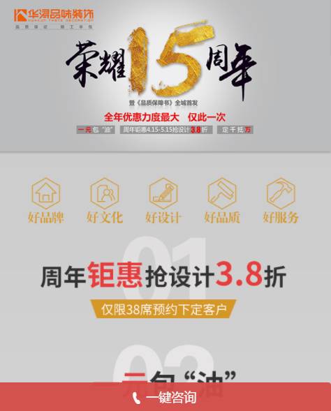 不足之处: 背景灰暗,无视觉触动 “荣耀15周年”不知所云 优惠活动字体小,不醒目 首屏无表单,易造成流失 数据分析 为客户提供了数十条文案,客户偏爱“标题党”类型,最终选择如上。 创意点击率尚可,但消耗5600之后未收集到一个表单。 策略调整 1、推出新活动:“装修送橱柜”——以大力优惠吸引客户到店 2、更改创意,舍弃“标题党”,使标题与产品高度相关,降低无效消耗 3、美化落地页,将表单置于显眼位置。 4、根据之前投放结果分析,精准人群定向 优化调整 修改之后的创意与产品高度相关,最低平均转化如何做营销策划方案成本450,基本达到客户预期。且根据客户反馈,表单质量好,到店率和下定率高
