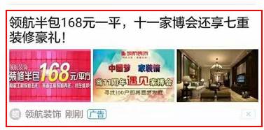 在我们徐州本地,今日头条作为领航装饰第一次的线上新媒体投放渠道,确实给了我一个惊喜,不仅是因为超高的曝光性价比,更是能够给我们带来实实在在的效果转化,现在的时代果然是要把营销重点转移到线上新媒体上,我们要尽快去适应这种时代。——程磊 投放背景 家装O2O的蓬勃发展吸引了众多消费者和业界人士的关注,互联网部分地解决了家装行业的很多问题,比如让行业信息更加透明化、让产业链上的企业衔接更为密切等。但随之而来的就是家装行业的激烈竞争。如何能够快速在线上获得有效用户信息的收集成为装饰公司线上战场的核心战斗能力。 徐州领航装饰希望通过头条广告投放获取有效客户信息,依托头条生态自有流量,抓取有兴趣用户,链接用户与企业,快速采集客户需求直击目标用户,提升ROI. 投放目标 精准定向意向目标人群,有效提升ROI。通过投放头条广告,借助精准头条多维度定向,精准触达目标消费人群,获取有效的客户信息,达到目标转化,线下邀约进店签单。 投放方案 标题多创意,同时提升CTR,增大活动营销力度,提高点击转化,固定每月投放,通过提高,争取降低CPC的空间,依据头条流量及客户效果变化趋势,分时段,分日期做出针对性出价。 广告创意