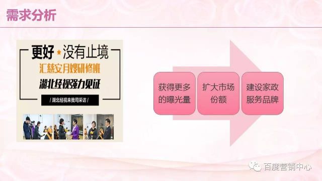 月嫂企业如何利用淡旺季扩展影响力?在行业中如何第一时间发觉受众人群关注点的转移?月嫂企业经营中的真实痛点,你的企业是否也存在?百度作为网络推手,教你如何利用营销手段解决痛点,紧跟行业动向、成就企业成长。