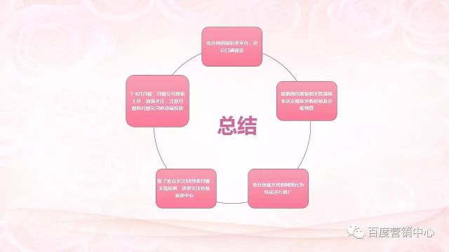 从行业的整体趋势,包括人群属性,还有品牌方面的分析,总结出以下几点: 在移动端就要对移动端,向月嫂和月嫂公司加强一个投放和关注。 对行业人群,30-39岁的女性关注进行精准的定向。 在相关的紧缩上要对这些进行设置和预算的分配。 用一些知识类的平台进行帮助客户提升我们的品牌形象。