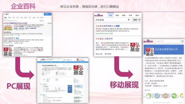 企业百科:整体的PC和移动端的展现树立企业的形象,进行口碑建设。