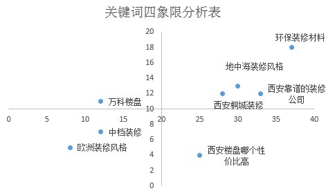 小账户更要精细化优化。今天我们来看一个装修行业小账户的优化案例。通过四象限分析,精细化优化账户,小账户也会有大作为。 此篇文章是“数据报告私房妙招”的来自西安传迈客服同学的征文,大家先睹为快吧! ▼客户背景 家装行业客户,优化前65%的预算投放PC端,35%预算投放无线端。整体预算利用率只有40%,投放力度小,推广效果不明显。 急需解决: 开发的小程序小程序1、 提升转化效果,增加咨询量; 2、 提升预算利用率,加大无线端的投放力度; ▼私房妙招 1、 使用基础报告结合转化数据,将关键词按网络危机进行公关处理四象限进行分类; 2、 将分类的关键词,结合不同的数据报告有针对性地进行优化; 第一步,我们先来生成关键词的四象限图。生成后的示意图如下所示,横坐标表示点击,纵坐标表示转化。