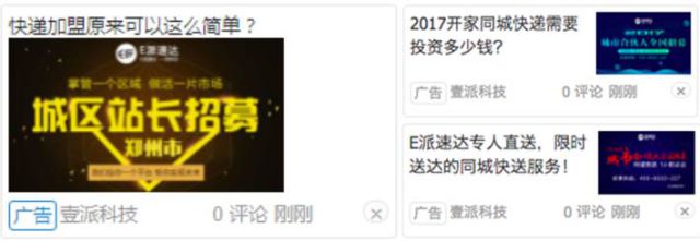 在投放初期,张凡选择了(按点击付费)的投放形式,因为没有经验,素材做的也一般,广告的曝光量和点击量都上不去。 这一切被的优化师小王时刻关注在眼里。优化师小王发现问题后,主动与张凡沟通,帮助寻找曝光和点击上不去的原因。从E派速达的推广目的“招募城市城主”来分析,优化师小王建议使用(按转化出价)的投放方式,以转化为目标,而非以点击为目标,最大化转化率,控制转化成本。 张凡听完优化师小王专业的分析,立即决定采纳小王的建议。 优化一:广告样式优化 突出业务亮点、吸引点击 “我们原本的信息流广告是左文右图,图比较小。小王建议增加上文下图的信息流广告呈现样式,这个样式的图较大,加一两个亮点描述到图上,会更能吸引点击。广告标题文案也做了很大的优化。我们原来写的不怎么吸引人,优化师小王帮我们改的标题,让我看了都很想点进去,实际点击率也提升了很多。我们公司现在其他营销活动需要起标题的时候,我还会打电话咨询小王的意见呢。”张凡对优化师小王赞不绝口。