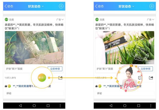 资生堂旗下品牌泊美针对秋冬肌肤保湿需求推出“果汁”面膜,主打如畅饮果汁般为肌肤注入鲜活力的产品卖点。在投放QQ空间视频页卡广告时,泊美利用“个性赞”功能,将点赞图标设计为“鲜活力&rd危机公关要素quo;字样,直接突出主诉卖点,当用户点赞时,品牌代言人白鹿比心的动画效果跃然信息流推广视频教程屏幕,清新可人的形象凸显品牌调性。