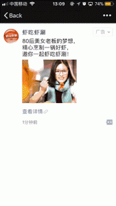 品牌故事 虾吃虾涮是一家主打“虾”主题的火锅品牌,创始人牛艳作为主持人跨界餐饮业,短短两年就在全国范围内铺设了600家门店! 营销痛点 天气渐冷,火锅渐热。作为老少皆宜的国民美食,火锅因技术依赖度低、可复制性强、毛利高等优势,深受各路餐饮创业者青睐。然而同质化强、竞争环境激烈,也让火锅业成为餐饮界最难“存活”的掘金之地!虾吃虾涮也身陷其中。 营销目标 扩大虾吃虾涮的品牌影响力的同时实现门店的高速扩张,精准化营销工作迅速占领消费者心智,强化消费者对虾吃虾涮的品牌认知度。 投放方案 精准人群洞察,利用大数据锁定朋友圈吃货 虾吃虾涮主打年轻人时尚饮食,“虾火锅”、“健康饮食”等概念专攻年轻一族喜好。为了保持品牌年轻化形象,虾吃虾涮将目标消费群定位为年轻吃货。 基于这一推广目的,优化师从年龄、学历、关注领域等维度,为虾吃虾涮圈定目标群体人群画像,量身定制投放策略——年龄选择25-50岁有消费力人群,兴趣标签圈定餐饮美食、商务服务、金融、汽车、房产等几大类别的商务人士,实现精准投放,锁定朋友圈的吃货,保证广告的传播效果和转化率。 美女老板亲力亲为,图文并茂诠释品牌故事 虾吃虾涮朋友圈广告外层图片别出新裁,美女创始人亲自为品牌代言,塑造了品牌亲和时尚的形象;“80后美女老板的梦想,精心烹制一锅好虾,邀您一起虾吃虾涮”外层文案引发用户好奇,唤起目标受众对品牌的兴趣,进一步点击了解详情。