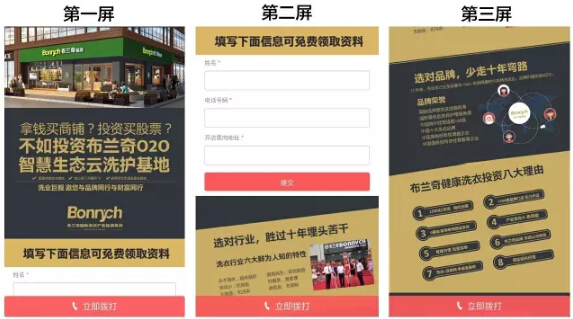 第1屏:突出品牌优势及三大卖点优势:以“填写下面信息可免费领取资料”为辅助,引导用户表单填写,使用“立即拨打”悬浮按钮引导用户拨打电话。 第2屏:表单线索收集:表单填写简单便捷,增加表单提交意愿。 第3-4屏:优势详述:加深用户对品牌的认知程度,强调投资回报,号召用户完成表单填写。 案例总结 利用oCPC+建站工具模式,省去了落地页投放oCPC技术对接成本,而且能让广告主利用头条建站详尽的数据披露对oCPC广告计划进行优化,不断调整落地页效果,帮助广告计划顺利进入第二阶段,使成本更可控。 最后,感谢布兰奇有限公司提供案例支持,希望本案例能给各位金主带来帮助!