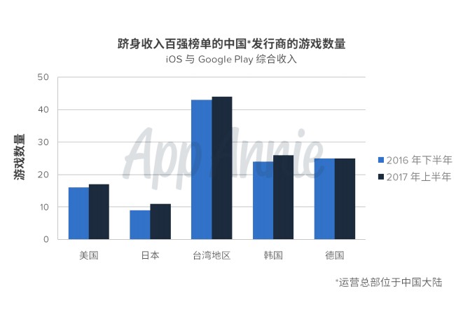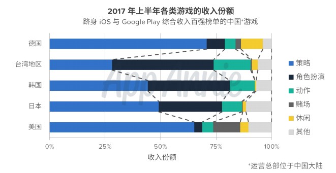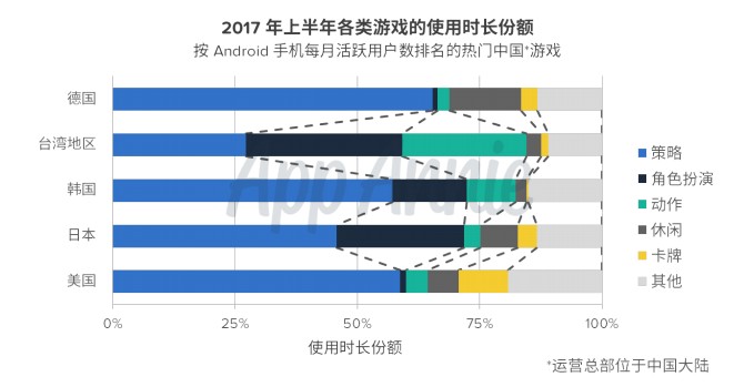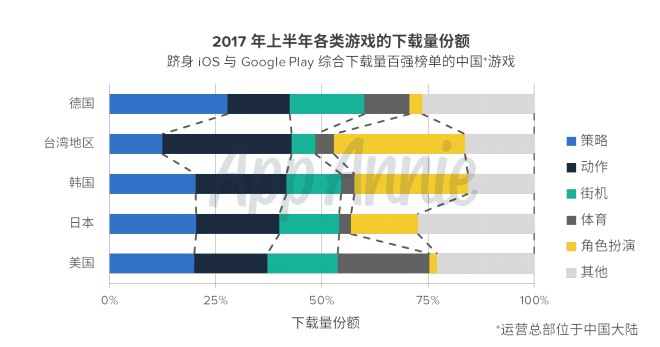 7月31日上方网消息,App Annie近日发布了《2017上半年中国手游厂商出海报告》,报告显示,国内手游厂商出海已成今年的大趋势,从国内厂商在海外的收入情况来看,出海的目标市场主要集中在欧洲、美国、东南亚、日韩,非洲,以及澳洲等地,此外在巴西、俄罗斯也有比较大的市场机遇。 不同类型、体量的国内大中小厂商,正以多种方式和角度切入海外市场。这使得国内产品在海外多个市场、多个领域同时开花结果,也有小型甚至个人厂商在海外市场创出非常好的成绩。从2017上半年来看,出海市场大盘已增长到去年同期的2.3倍,市场的增长速度也在加快。 从收入榜来看,成熟市场美国、日本、某个小岛、韩国依然贡献着头部的收入。德国、英国、法国等欧洲地区的发展非常迅速,占据了收入榜的第二梯队,排在后续的是加拿大、香港、俄罗斯三块市场。 从下载榜来看,美国依然占据榜首,贡献着最多的下载量。但第二梯队被一些发展中国家霸占,其中的印度、巴西、印尼,都是近年来发展极其迅速的海外市场。特别是在印度,由于人口基数大,用户对游戏产品的需求逐渐被挖掘出来以后,会以非常迅速的趋势扩张开来。 从国内厂商在海外地区的收入增长表现来看,美国市场依然保持领先,能达到80%的增长率。其次法国、英国、德国等欧洲地区,以及加拿大的收入增幅也都维持在50%以上,属于增速极快的市场。日本市场由于近年来国内厂商的成功介入,也呈现出较好的增长趋势,收入增幅能维持在接近40%。相对而言,港台地区的收入增幅已经放缓,作为出海第一站,港台地区一直是竞争最激烈的出海市场,随着大量国内产品的冲击以及用户疲劳感的产生,市场的提升空间也在进一步收缩。韩国市场更是出现了负增长的情况,用户属性的固化,竞争的激化,以及当地运作成本的不断提高,或许是导致出海厂商减少对韩国市场投入的主要原因。 新兴市场的崛起速度也非常惊人,特别是在开拓新市场的时候,国内产品在多个地区都有好的表现,说明产品本身在全球市场拥有很高的竞争力。 从不同市场内国产游戏数量的分布来看,某个小岛地区的竞争最为激烈,也再次验证了出海第一站的市场竞争程度,美国市场和日本市场则属于仅有部分产品打入的状态,相对而言韩国市场的接受度会更好一些,值得注意的是德国市场的产品数量已经追上了韩国市场的水品,当地用户对国内产品小红书店铺的接受度较高。 对比去年下半年和今年上半年游戏出海的数量来看,所有主流市场都呈增长趋势,说明除了老产品站稳脚跟外,新产品也在源源不断的输入各个地区,只是随着越来越多的产品进入各个市场,竞争也会随之加剧。 从各品类的下载量能看出,策略游戏和动作游戏在主流市场的表现都非常好,某个小岛地区动作游戏的吸量能力更好,策略类游戏在德国地郑州电台广告区的吸量能力更好,角色扮演类游戏比较适于在亚洲市场发展,体育类游戏的表现比较两极化,亚洲市场的接受度较低,但在发达国家的市场表现完全相反。总体来看,策略游戏几乎可以通吃全球主流海外市场,不论在下载量、营收额,以及对活跃用户的控制能力上,都具有高于其他品类的表现。角色扮演、动作类游戏依然是亚洲市场的主力军,休闲、体育类游戏虽然用户接受度高,但依然无法在发达国家市场中承担营收的任务。 以下为详细报告: