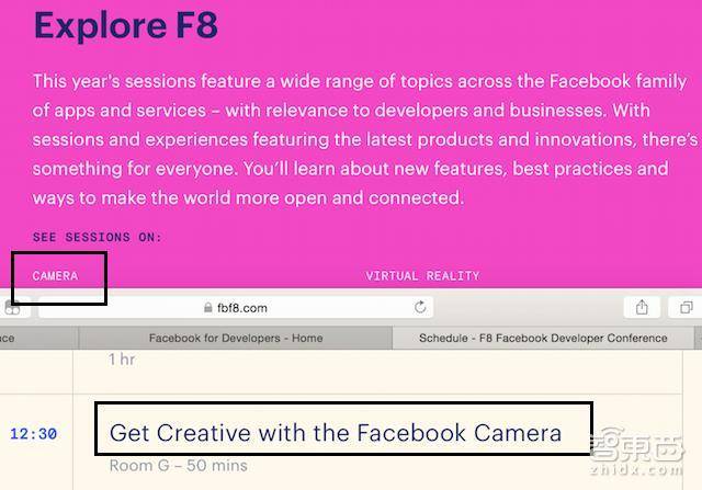 在F8大会开始前,我们可以在官网上看到如下信息:1、本次F8的内容涵盖相机、VR、Messenger等,其中“相机(Camera)”是摆在第一位的;2、在最重磅的开场演讲之后,第一个展示分享环节的名子就叫做“用Facebook相机发挥你的想象力(Get Creative with the Facebook Camera)” ——看到这些之后以为Facebook要推出一款相机硬件的我真是太天真了。在随后整整一个半小时的开场演讲里,从扎克伯格本人到后续出场的各类CTO、副总裁们,没有任何一个人提过任何一款硬件产品。 这次的重头戏是“相机”没错,但“相机”只是一个名字,扎克伯格真正重磅推出的是一款叫做“相机”的AR平台。