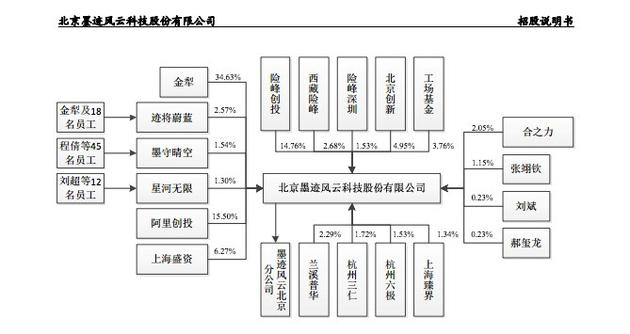 (股东情况构成:险峰华兴、阿里巴巴、盛大和创新工场为主要机构股东) 阿里盛大创新工场为主要股东 招股书还披露了墨迹天气的股东机构情况,资料显示,墨迹天气创始人及CEO金犁持股34.63%,险峰华兴持股17.44%,阿里持股15.5%,创新工场持股8.71%,上海盛资(盛大集团)持股6.27%。