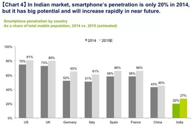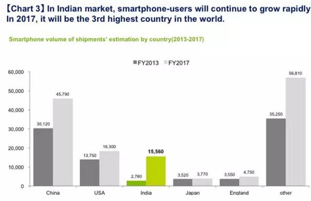 2017年智能机出货预测 从手网络推广外包公司机市场来看,截至目前,功能机依旧是印度的主流手机,大概有6亿台左右,智能机仅为2亿台。但与此同时,智能机也在迅速的发展。预计到2017年,印度的智能机出货量将达到1.55亿台,成为继中国和美国之后的第三大智能机市场。到2020年,智能手机的出货的份额也将从2014年全球出货总量的7%升至15%。