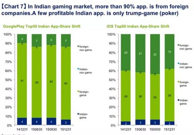 海外厂商的构成 这里还要说一点的是,事实上印度玩家对于海外的游戏厂商并没有一个明确的认知。以日本为例,从商人的角度来说,对于日本的技术和产品质量都抱有积极的看法;但从普通人的角度来看,虽然同处于亚洲,但日本位于遥远的彼端,可以说是一个陌生的国家,甚至不少人认为武士和忍者就是日本的代名词。 对于创业方面,以孟买为中心,大概聚集着100多家美国、中国、新加坡的VC机构,他们对于游戏方面的投资还是相当看好的。整体来看,如果想要出海,印度市场的确是很好的目标。如果因为不了解,以及因为觉得难以打开市场而放弃的话,可以说是一件很可惜的事情。因为每一个海外市场都有着其风险,而印度游戏市场几近空白,可以说拥有目前最庞大的潜在市场。